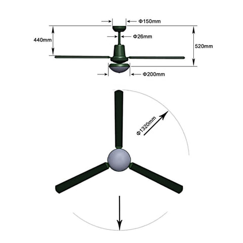 1200mm DC With 3 Colors LED Light 3 Blades Ceiling Fan